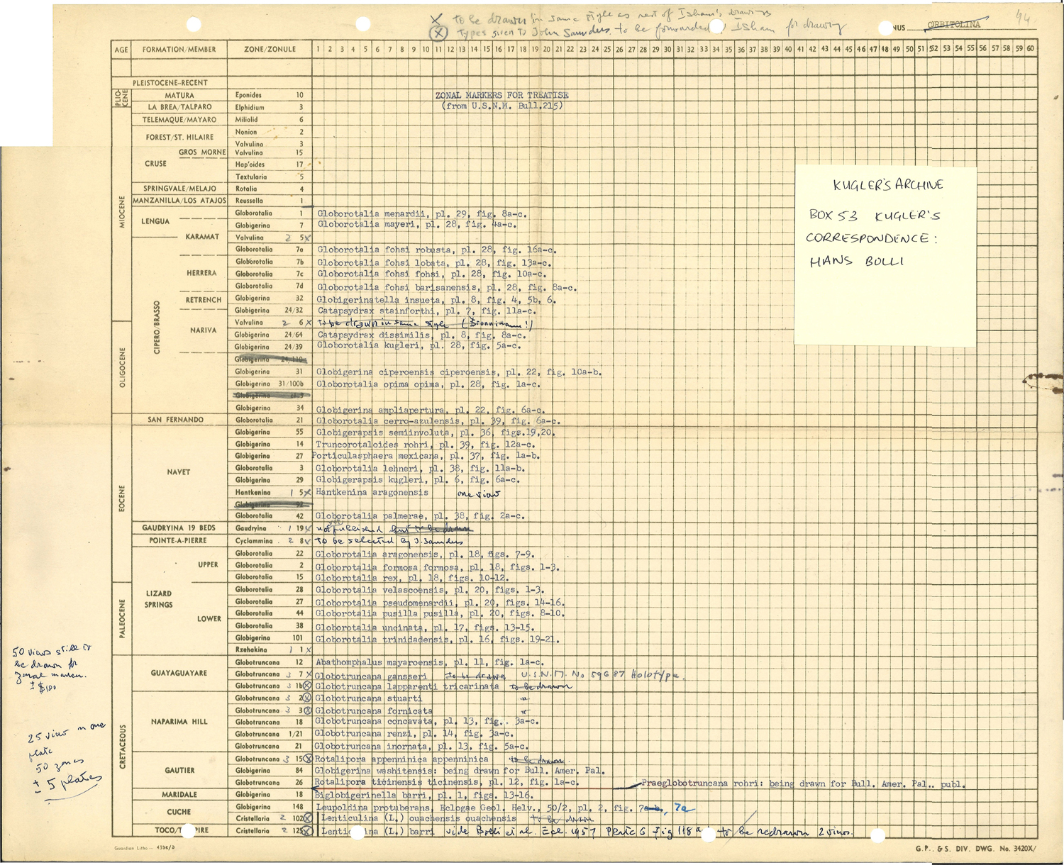 of Cretaceous through Cenozoic foraminiferal zonal markers and