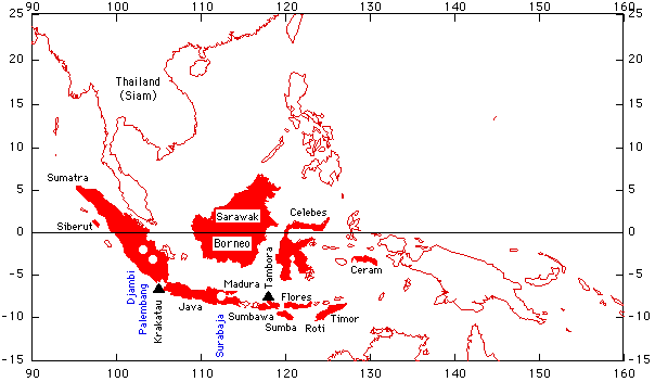 Map of Indonesian areas from where the Natural History Museum holds collections