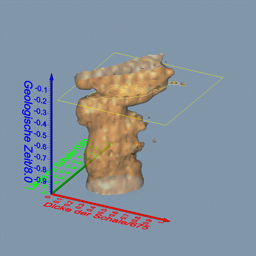 the shell in axial view (green axis) and units of geological