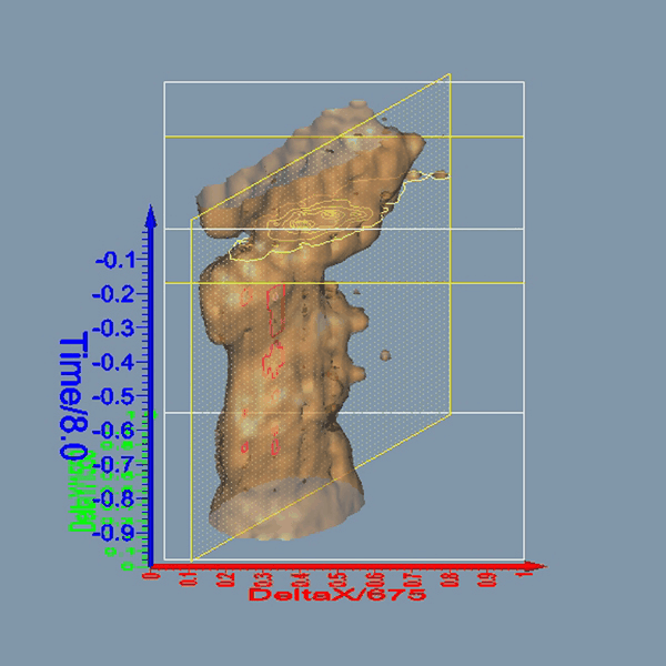 time (blue axis).
